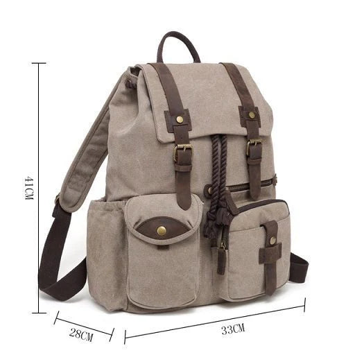 Our heavy-duty canvas backpack with leather trimming. It includes 3 outer pockets and an internal laptop compartment, this bag will help keep you organized while carrying everything you need.