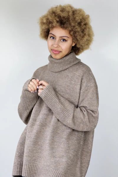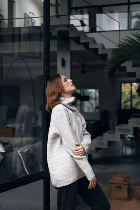 Our Dog Walker chunky cowl Sweater is a must have for fall/winter! It feels like wearing a beautiful soft blanket. With a ribbed wide neck and cuffs that can be folded back or worn straight and scrunched, it is the perfect piece to add to your wardrobe. It has a slightly longer back length for ergonomic fit. This sweater is a must have for the cooler months. It washes and wears well. Despite its size, this is a lighter weight sweater that won't drag you down. Beautiful fashion shades or neutrals to compliment your wardrobe.