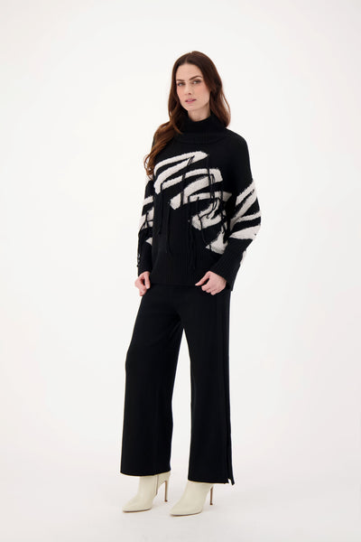 This Gabby Isabella knit sweater features a sleek black base accented by a striking white zig zag pattern, combining classic style with modern geometric flair. Crafted for comfort and durability, it offers a refined look suitable for both casual and professional settings. The distinctive design adds visual interest while maintaining versatility in your wardrobe.