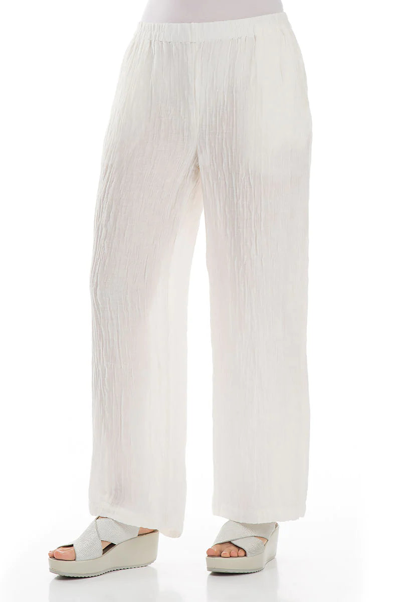 Comfortable and elegant trousers are made from the natural soft crinkled silk linen material in a straight cut. A timeless piece that is easy to care for and easy to wear. Style with a matching silk blouse or tunic.