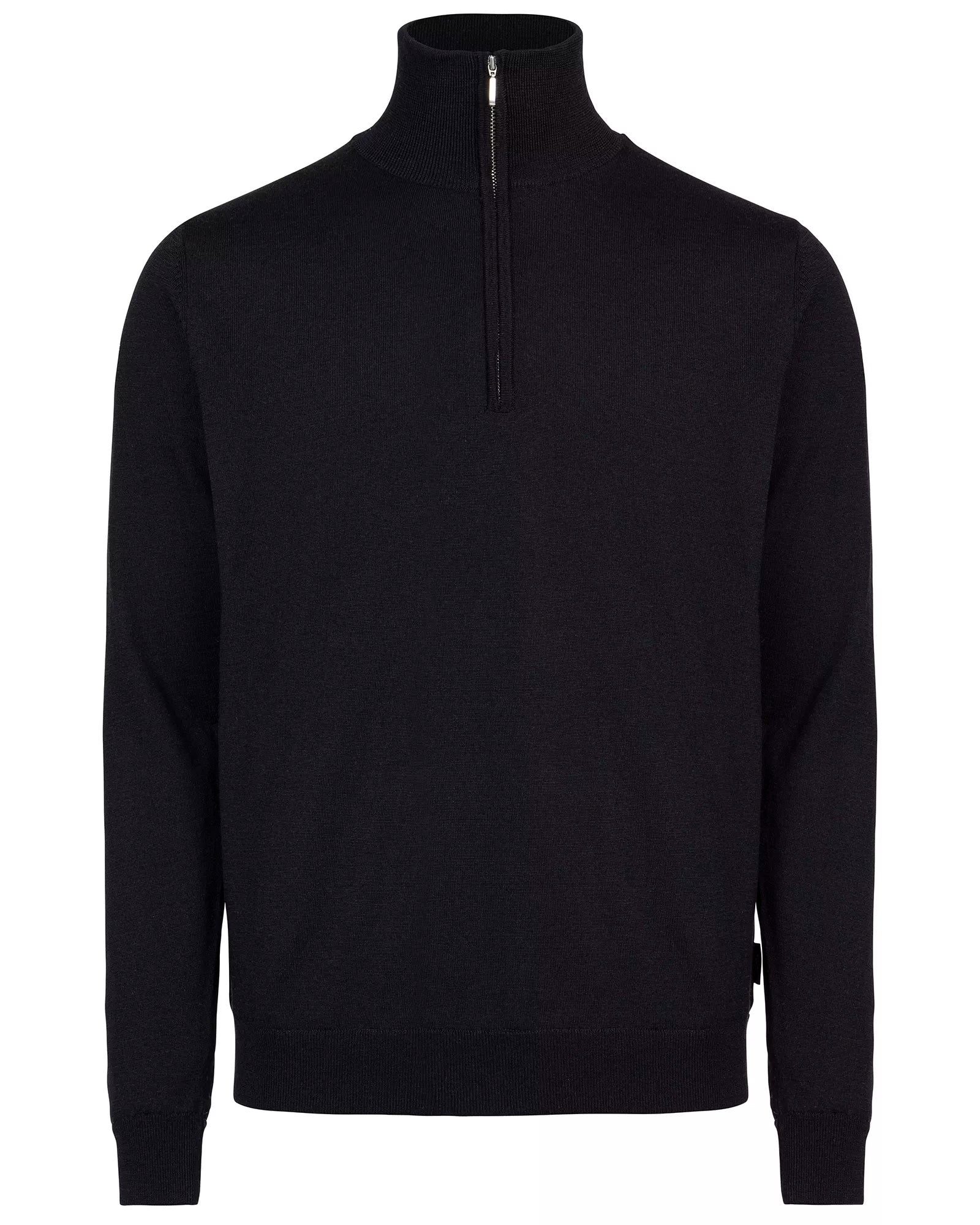 Knitted windproof sweater in 100% extra fine merino wool. Thin knit and soft feeling with ribbed ending. This sweater is perfect as a mid layer and very suitable on the golf course.
