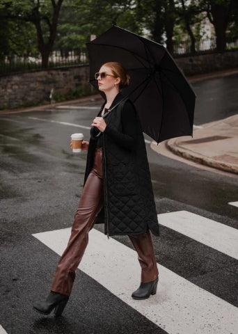 Long and lightweight liner vest designed to fit comfortably under our raincoats. Perfect as an insulator for those cooler rainy days or as a standalone fashionable outerwear jacket. Polyester filled with a quilted pattern, the long liner vest will keep you warm and looking stylish season after season.