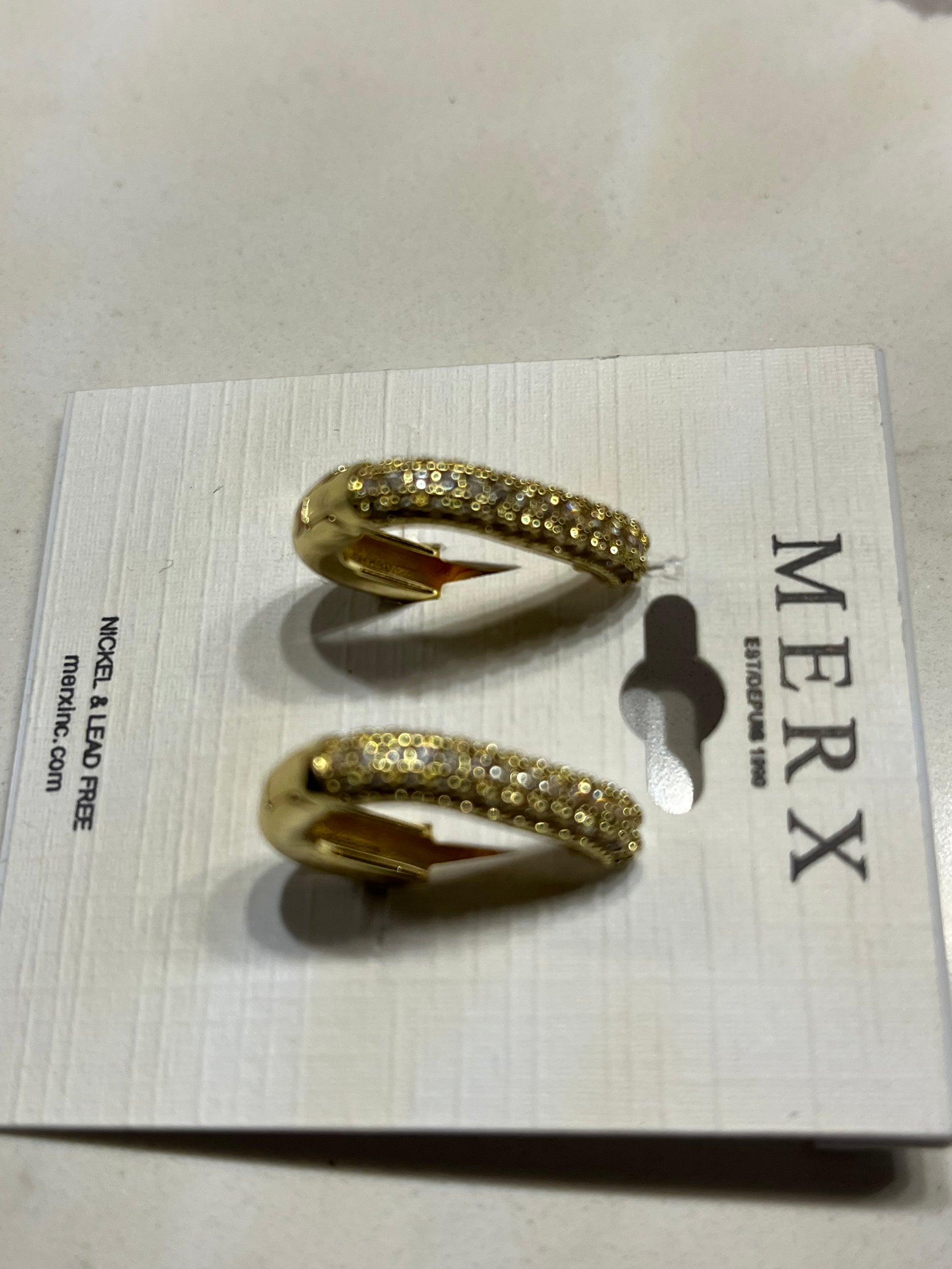 MERX - EARRING SHINY OBLONG HOOP GOLD WITH ENCRUSTED CRYSTALS