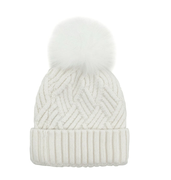 MITCHIE'S MATCHINGS - KNIT HAT W/ FOX POMPOM
