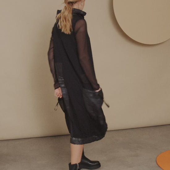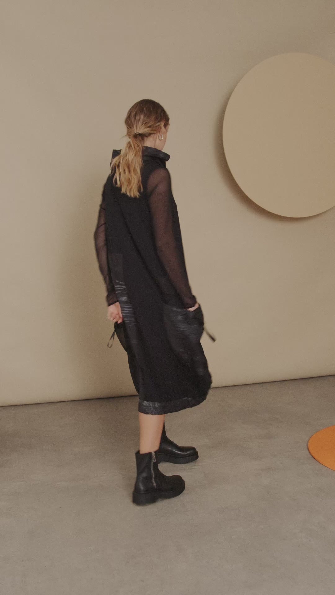 SHEER BEAUTY; The NAYA scoop neck top dazzles with a mesh sleeve. This addition takes it from a layering top to a showpiece. Perfect for those who prefer a covered arm.