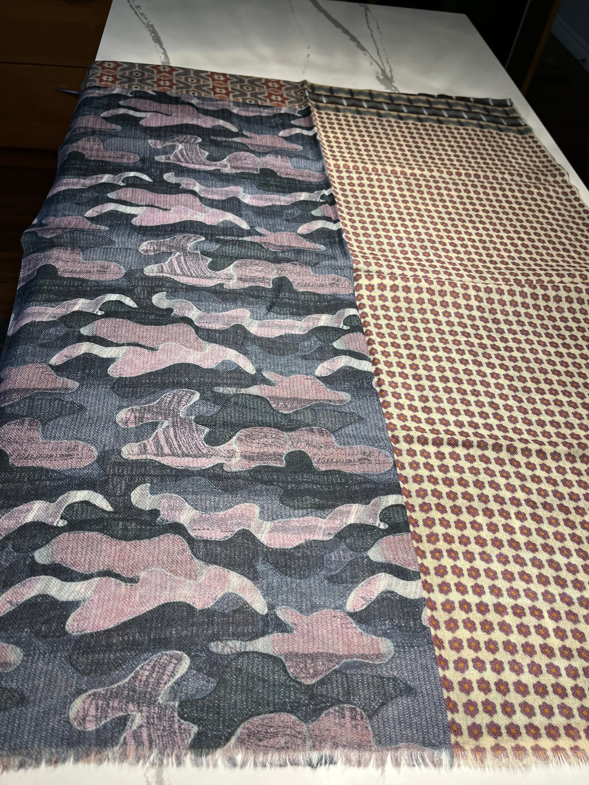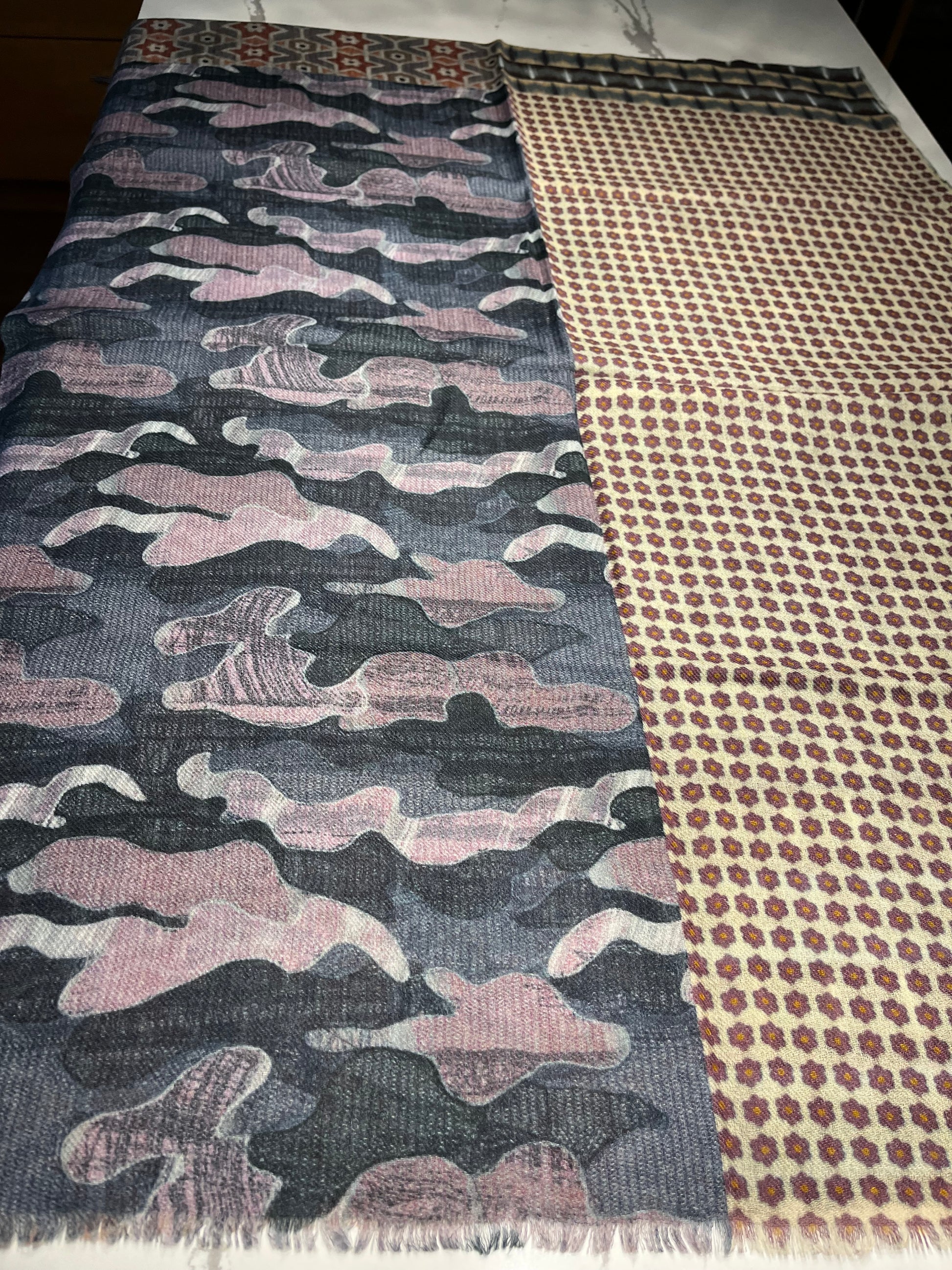 Our Radiance Digital wool & Silk Woven Scarf features a lightweight, tactile fabric designed for a lighter drape. Featuring a digital print and reverse printed in a paler shade, this scarf will add a subtle yet stunning touch to your wardrobe.