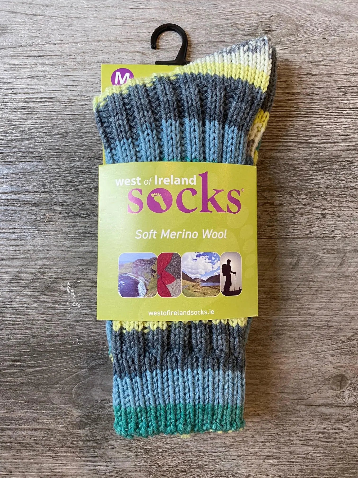 100% Pure Merino Wool Socks by West of Ireland, Made in Ireland. Soft & warm for women, these one of a kind … literally! No two are alike… are space dyed into wonderful, playful colour combinations. Hand wash cool water.